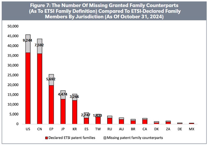 Relying solely on ETSI-declared patents introduces a bias in jurisdiction-specific patent rankings, as it skews the data based on declaration behavior. This leads to the omission of a substantial number of granted patents, undermining the accuracy and completeness of such analyses. To ensure balanced and reliable rankings, it is essential to account for all family counter parts, regardless of their inclusion in the ETSI database.