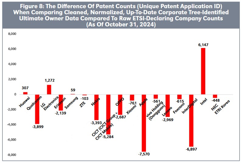 The following example demonstrates how raw ETSI data can lead to significantly different and inaccurate rankings that underrepresent certain companies’ 5G patent portfolios.